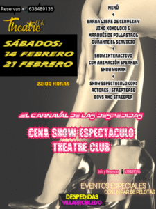 Cena Espectáculo show / vamos a coger fuerza antes de la noche que nos espera, cena con menú 4 entrantes + plato principal, + barra libre de cerveza y sangría durante la cena, un espectáculo de nivel con presentadora, vocal live, actores y show erótico chico y chica.
